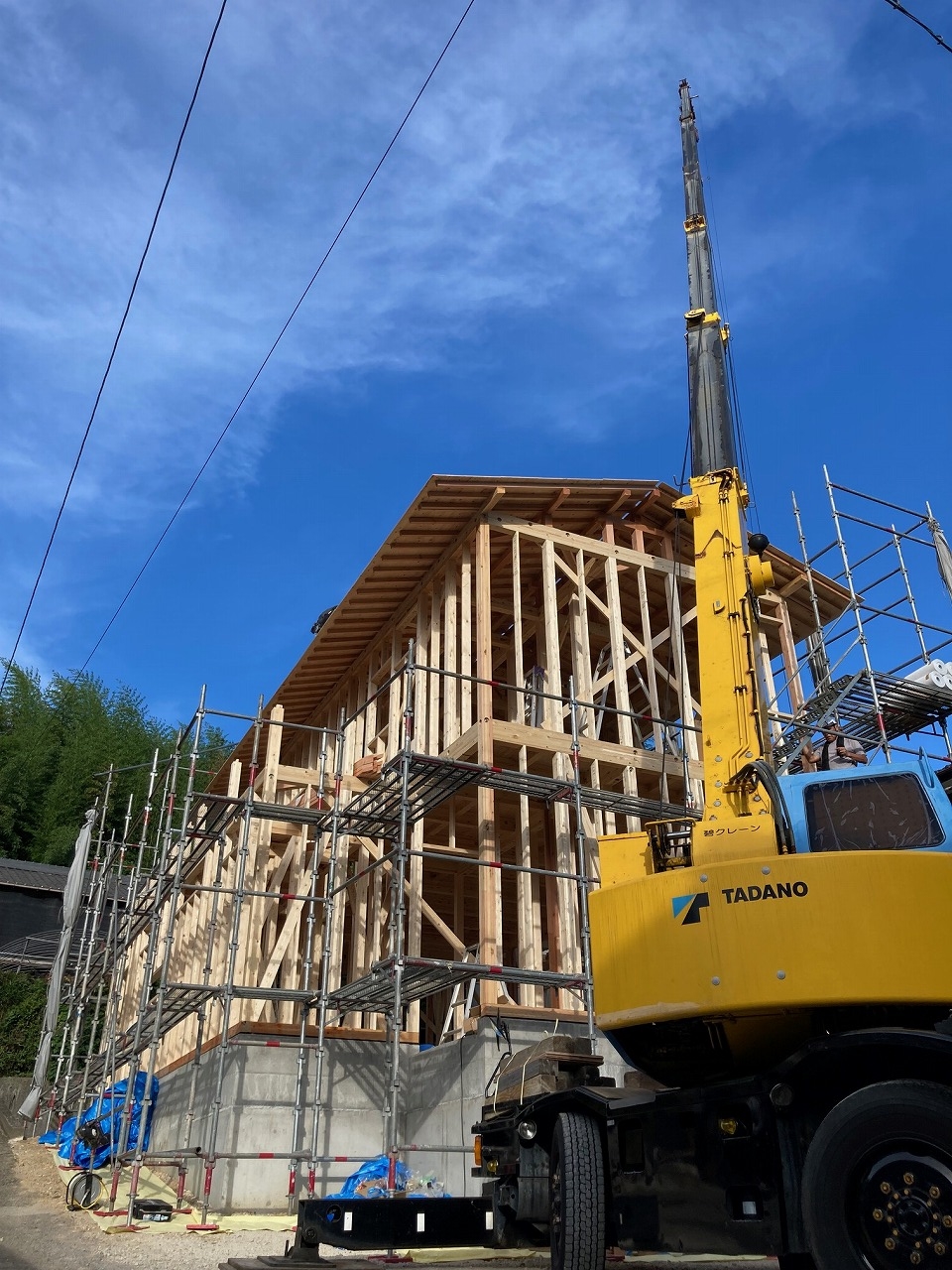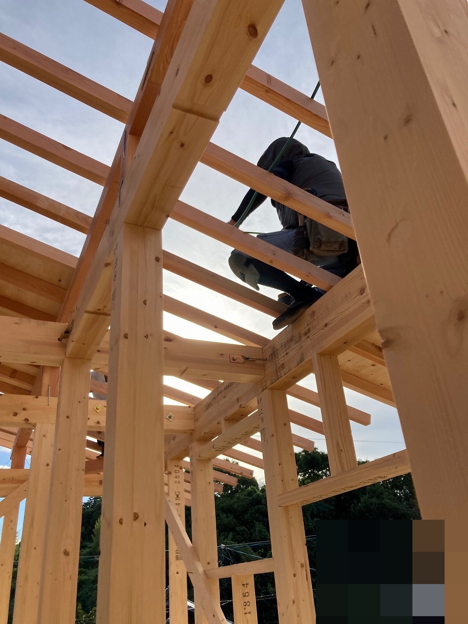棟(屋根の一番高い部分の大きい材料)が施工されます。