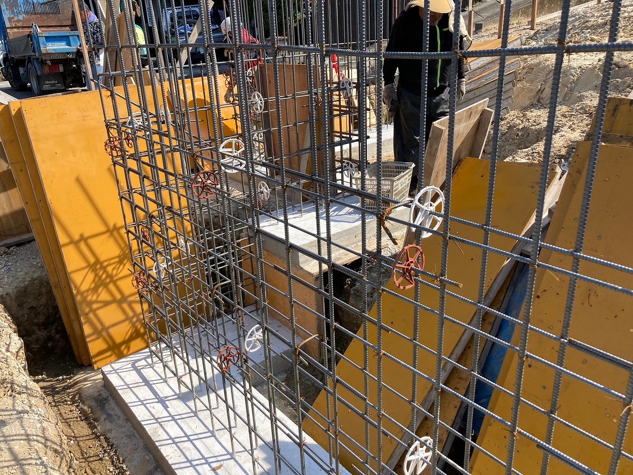 普通の基礎だと一度にできる部分を二回に分けて施工していきます。