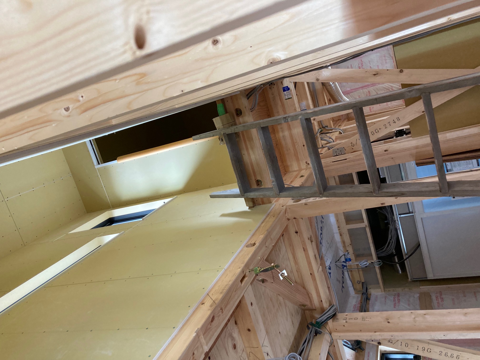 2階の壁・天井の石膏ボードが終わると次は1階の工事です。