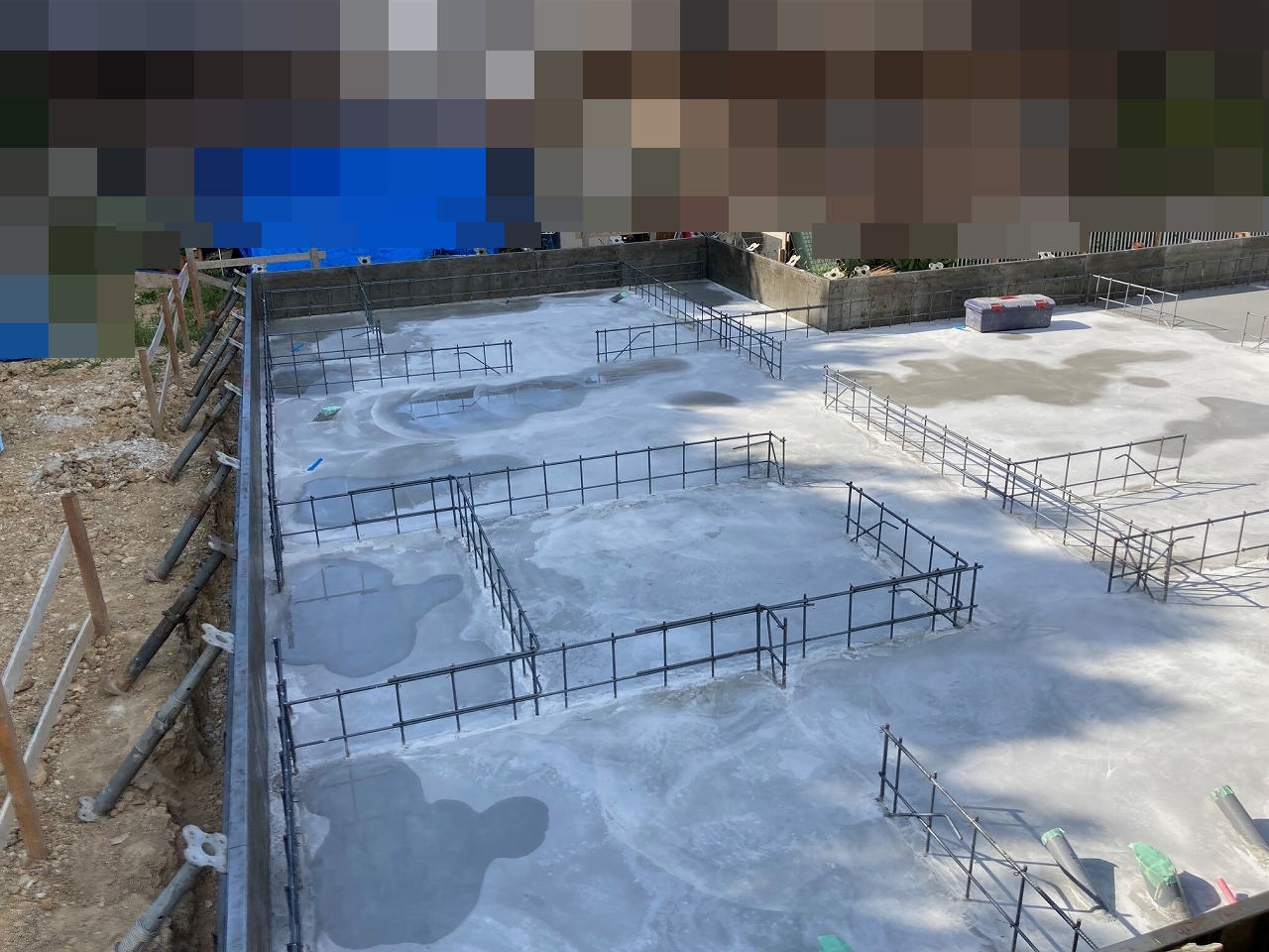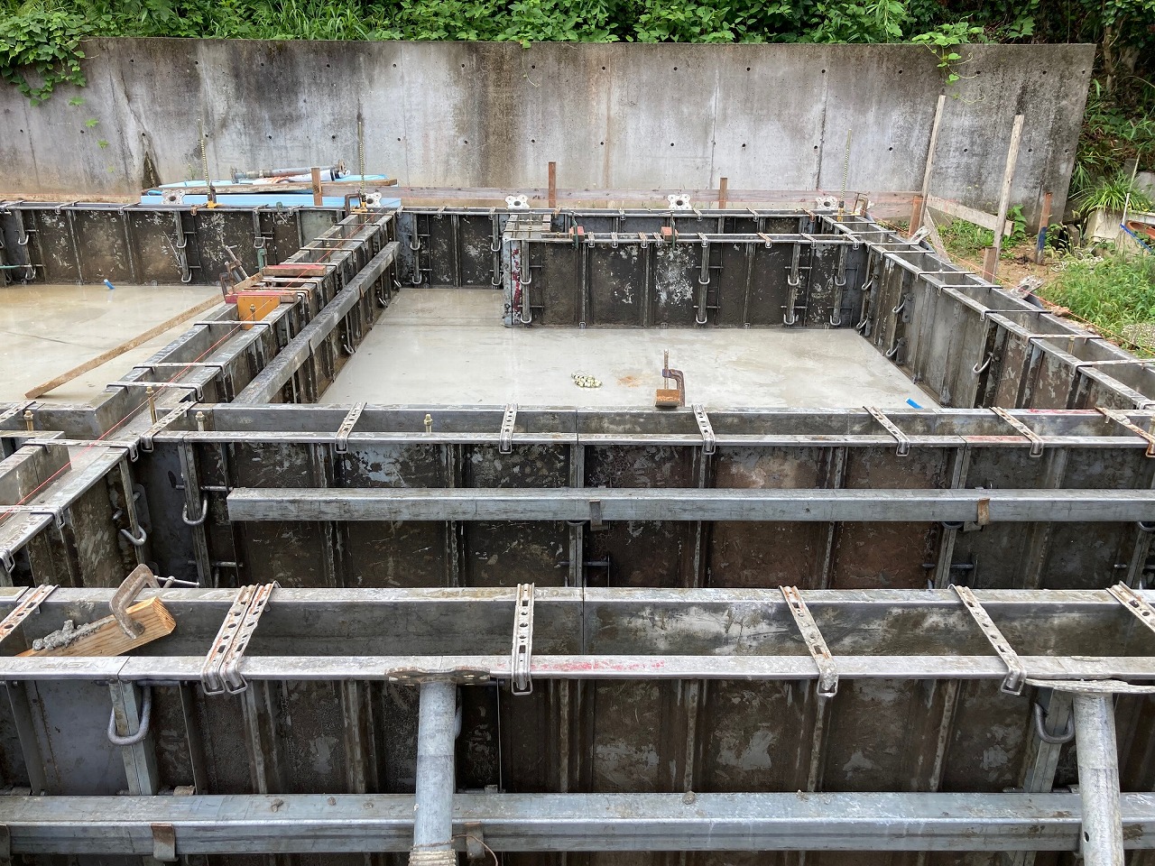 土間部分(平らな部分)が固まると、立上り部分の型枠を設置し