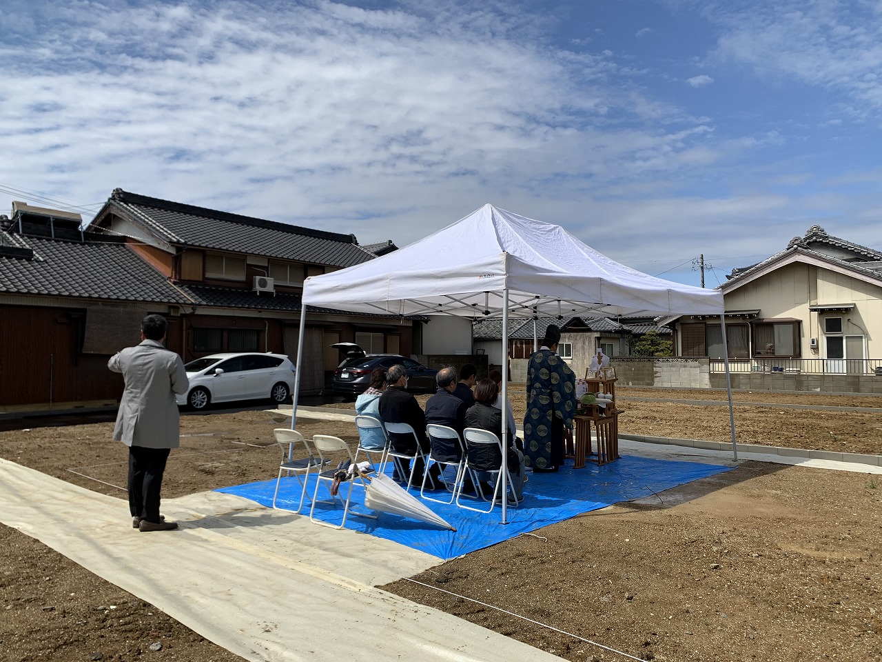 直前までの雨も申し合わせたように、地鎮祭の開始に合わせて晴れ間が出ました!