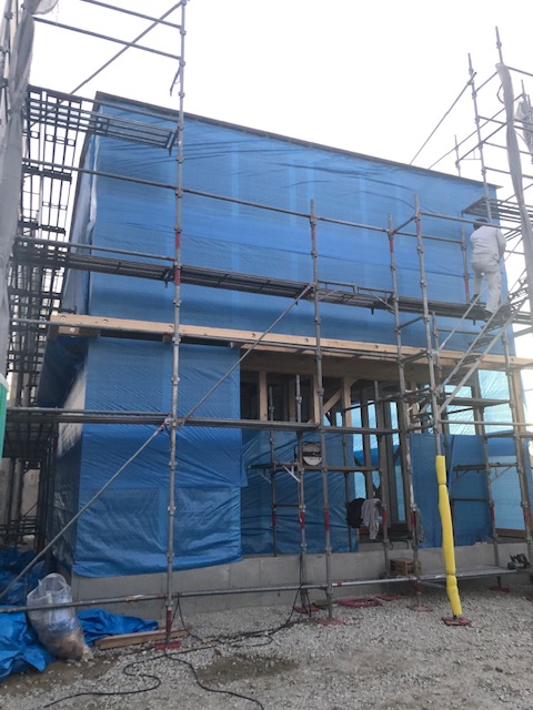 次の日が雨なので、外部の養生と屋根のルーフィングは