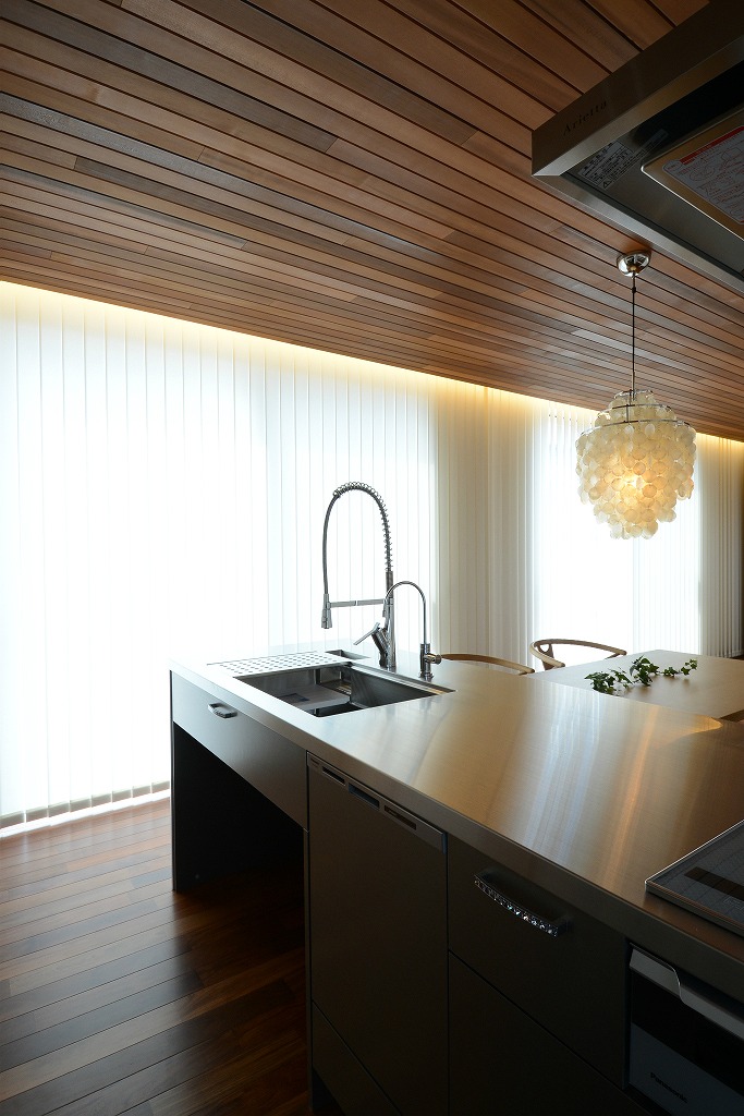 間接照明で計画したLDKはペンダントライトが映えるとても美しい空間です。