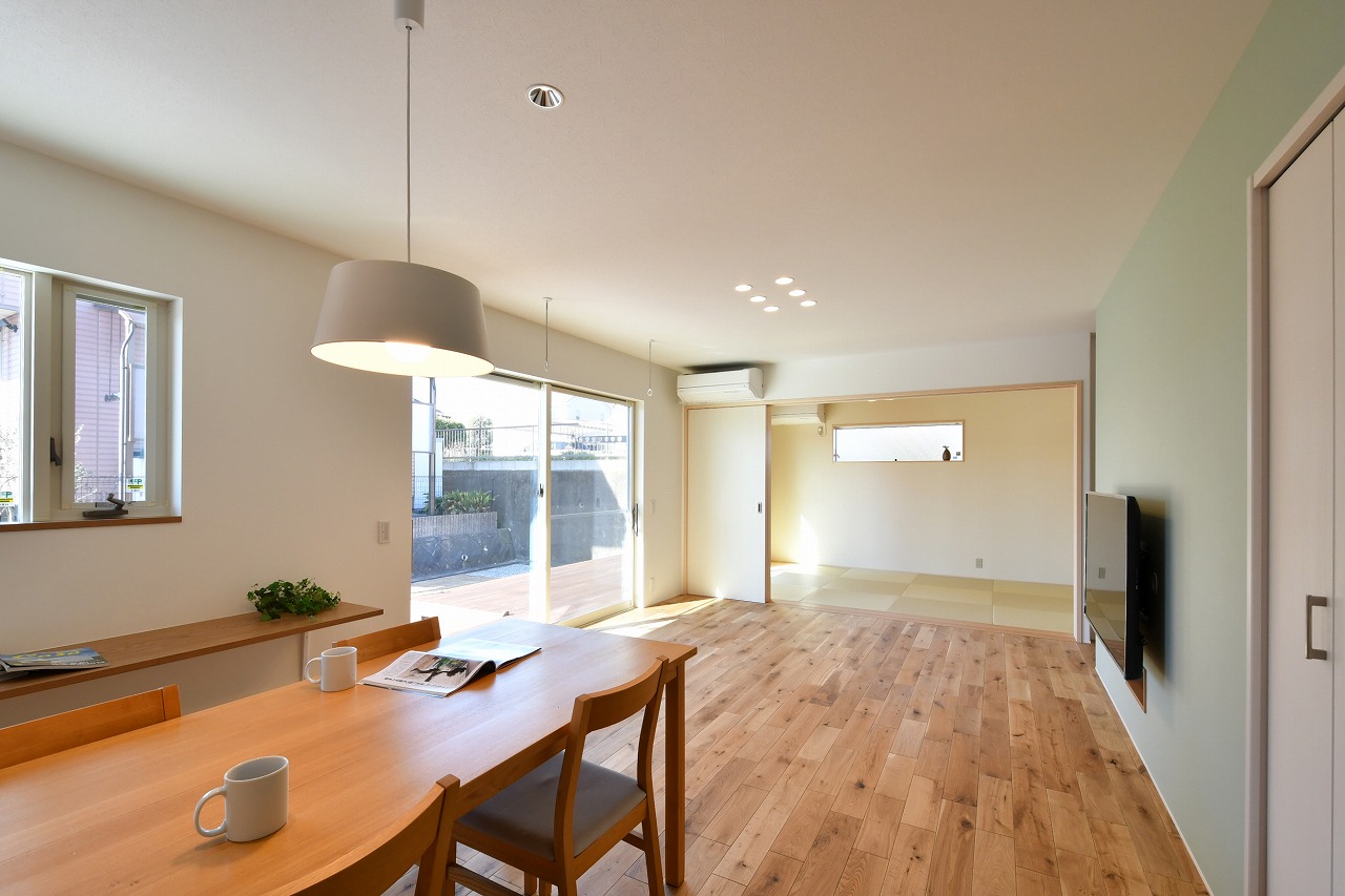 ガルバニウムのハードな外観とは裏腹な優しいインテリア。