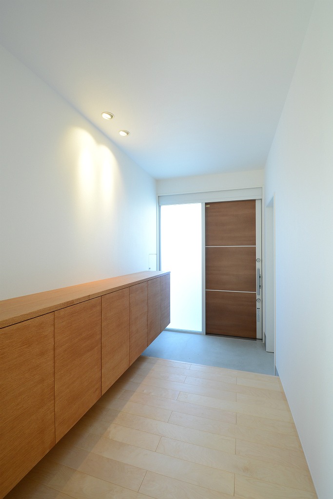 作り付けのチェリー材の家具がおしゃれなお家です。