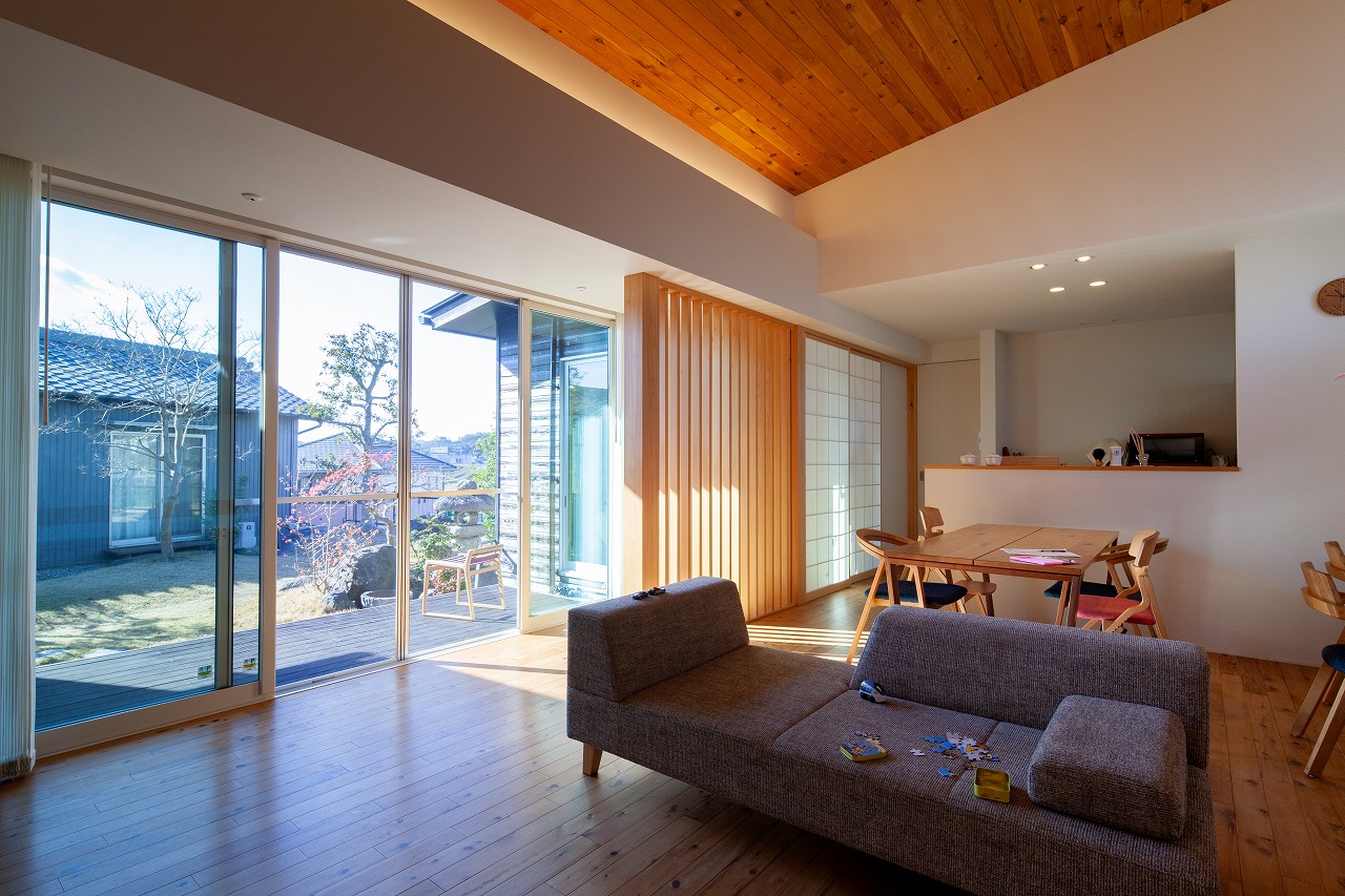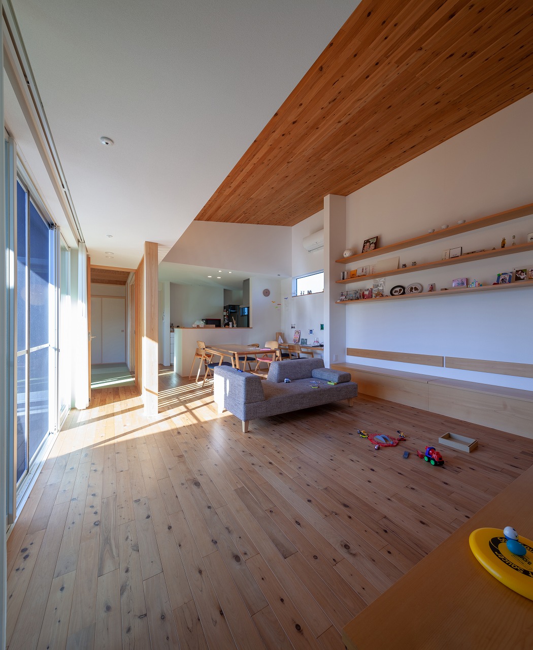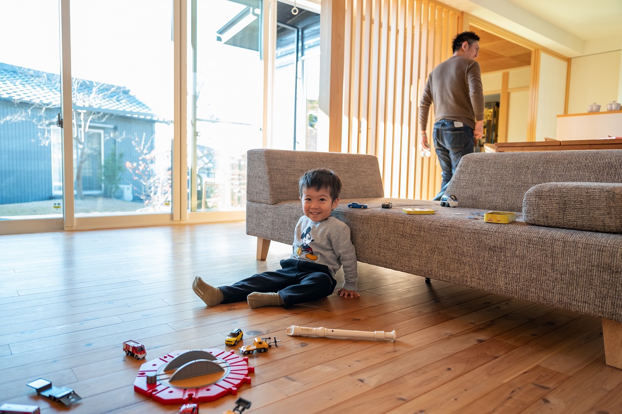 段差がほとんどないことはもちろん、子供部屋もリビングのすぐ近くにあり、将来は仕切れるように間取りも広く取っているので子供たちが遊んでいても目も声も行き届くので安心して見ていられますね。私には贅沢かなとも思ったりしますが、平屋の良さがしっかりと感じられてとても住み心地はいいです。